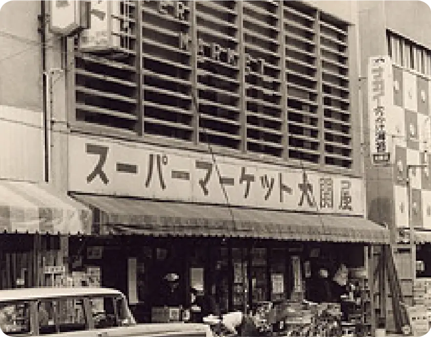 - 昭和40年8月 テナント部分を自社営業に変え、スーパーマーケットとして確立。