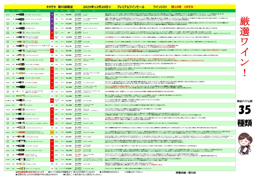 12/20(土)は菊川店でプレミアムワインセールを実施します。